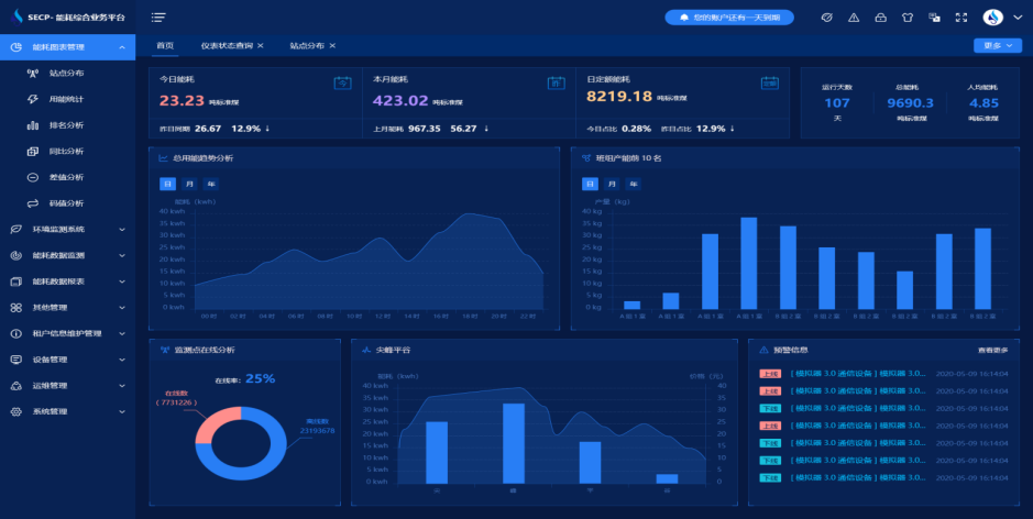 能源管理系统具备多项重要功能。首先,它能够实时监测各种能源的消耗情况,包括电力、燃气、水等各个方面的能源使用情况。其次,通过数据采集和分析,系统能够提供能源消耗的实时数据和趋势分析,帮助企业了解能源利用情况并制定合理的节能措施。此外,系统可以通过智能控制和调度,优化能源供应和需求,提高能源利用效率,减少能源浪费和碳排放。